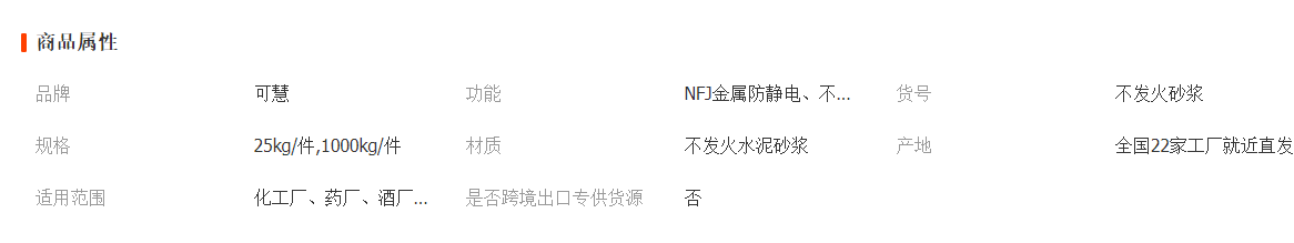 不發(fā)火水泥砂漿 不發(fā)火細(xì)石混凝土 NFJ金屬防靜電砂漿 22家工廠
