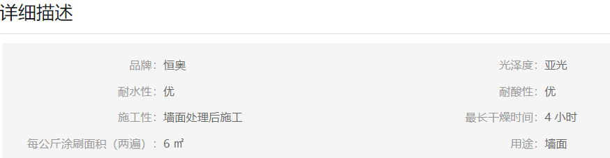系列墻面經(jīng)過一定處理后施工,遮蓋力強、附著力強、抗堿、防污、防霉。一般涂兩次重涂時間2-4小時,溫度低于5度請勿使用,有效時間12小時