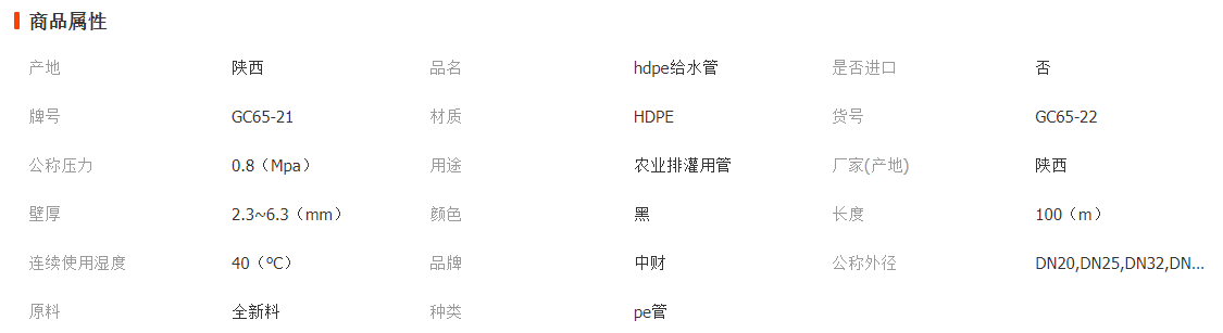 陜西中財(cái) PE給水管(